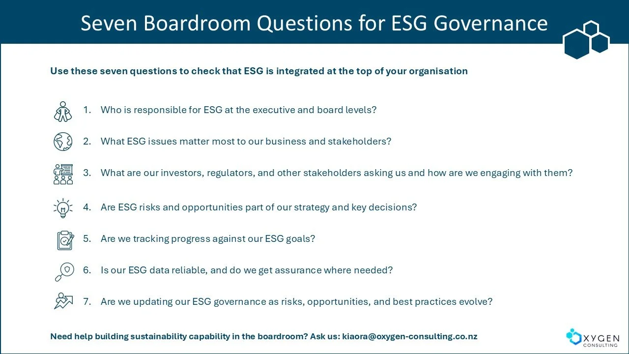 Today we’re sharing seven boardroom questions for effective ESG governance. This resource is a simple, practical tool to help boards and leadership teams check they’re asking the right questions and keeping ESG at the top of their agenda.
